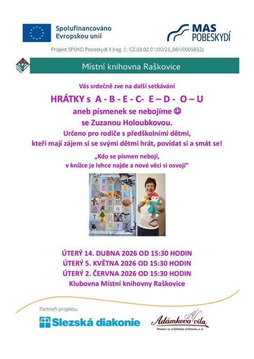 Úvod > Kultura > Kulturní akce > Raškovice - Knihovna - HRÁTKY s A - B - E - C- E – D - O – U 05.05.2026